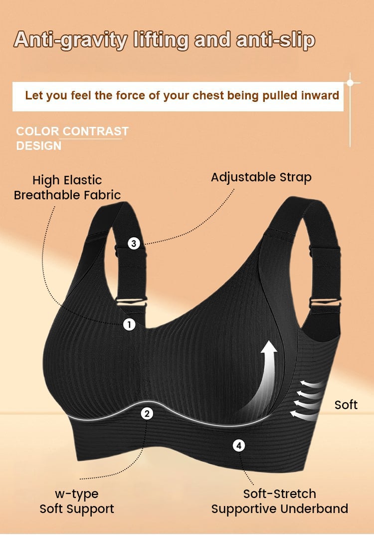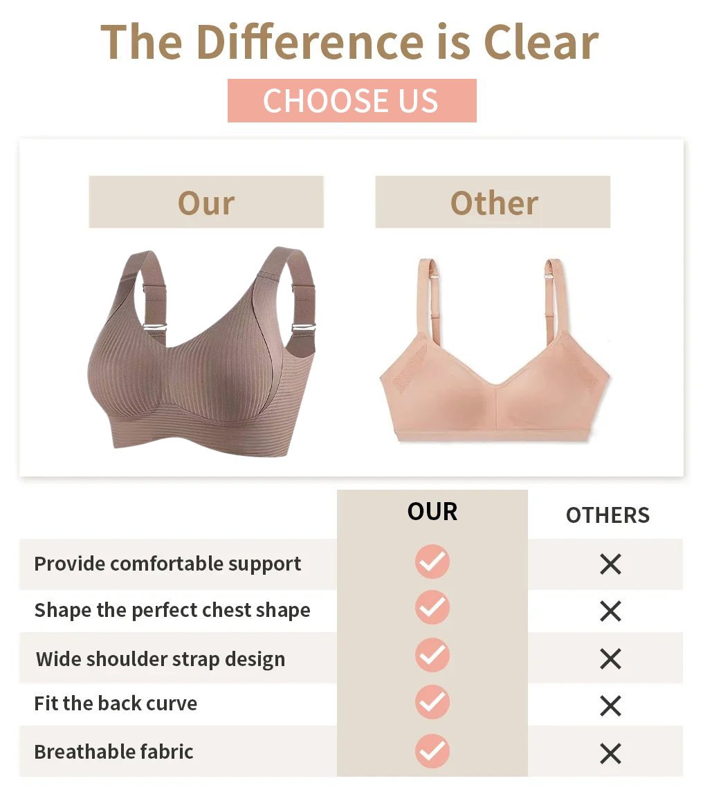 Regular bras can lead to sagging breasts, pressure points on the shoulders, and back fat buildup when worn for long periods of time. They also have poor breathability and are uncomfortable in the summer and during activities. Choose our Wireless Push-up Bra and enjoy all-day comfort, natural support and a perfect backline!